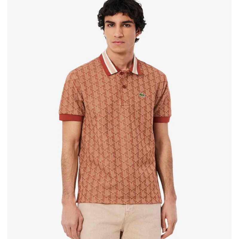 เสื้อโปโลผู้ชายทรงคลาสสิค ลายโมโนแกรม เป็นดีไซน์ที่ได้รับการออกแบบจากลาคอสท์ตั้งเเต่ปี 1933 ตัดเย็บด้วยผ้าเเจ๊คการ์ด ลายโมโนแกรม ประดับแถบผ้าสีที่คอสีตัดกัน ทำให้คุณโดดเด่น ดีไซน์ทันสมัย ผสมผสานความสบายกับความสง่างาม